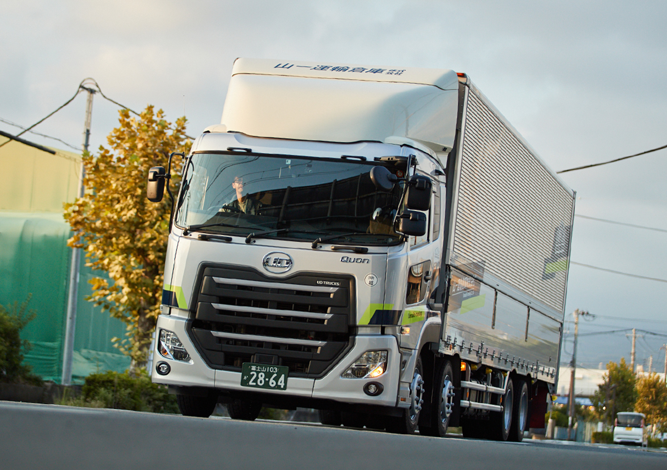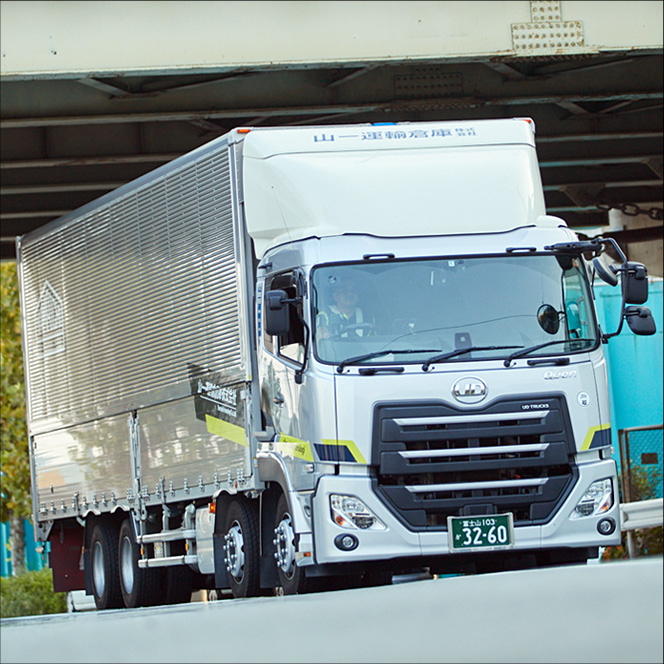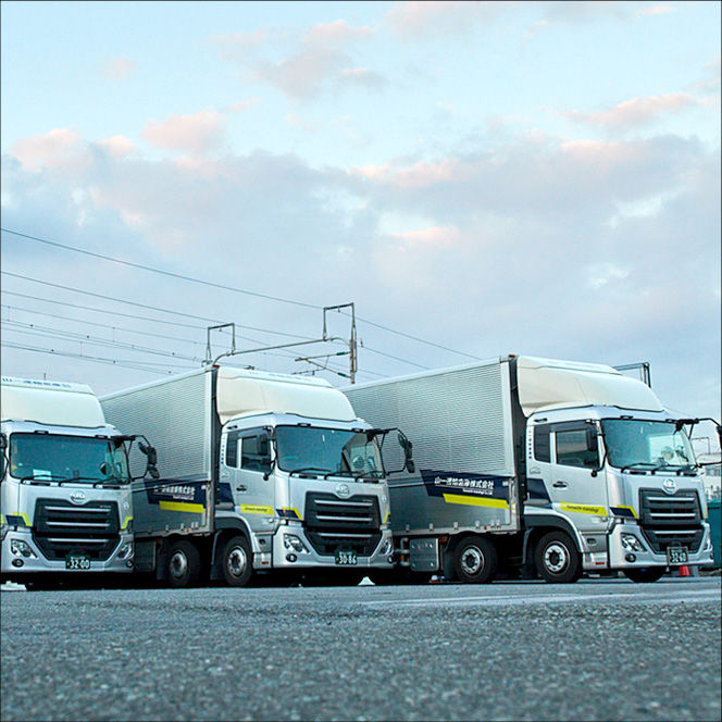 輸送品質の向上はもとより、環境への配慮は現在最も重要な課題となっています。当社は環境への負荷が少ない最新車輌を積極的に導入。さらに一度の運行でなるべく多くの物量を運ぶことで環境への負荷軽減を進めています。当社トラックは製作段階からトラックメーカーと綿密に打合せを行い、少しでも多くの荷物を運べるよう最大限の工夫を行っています。