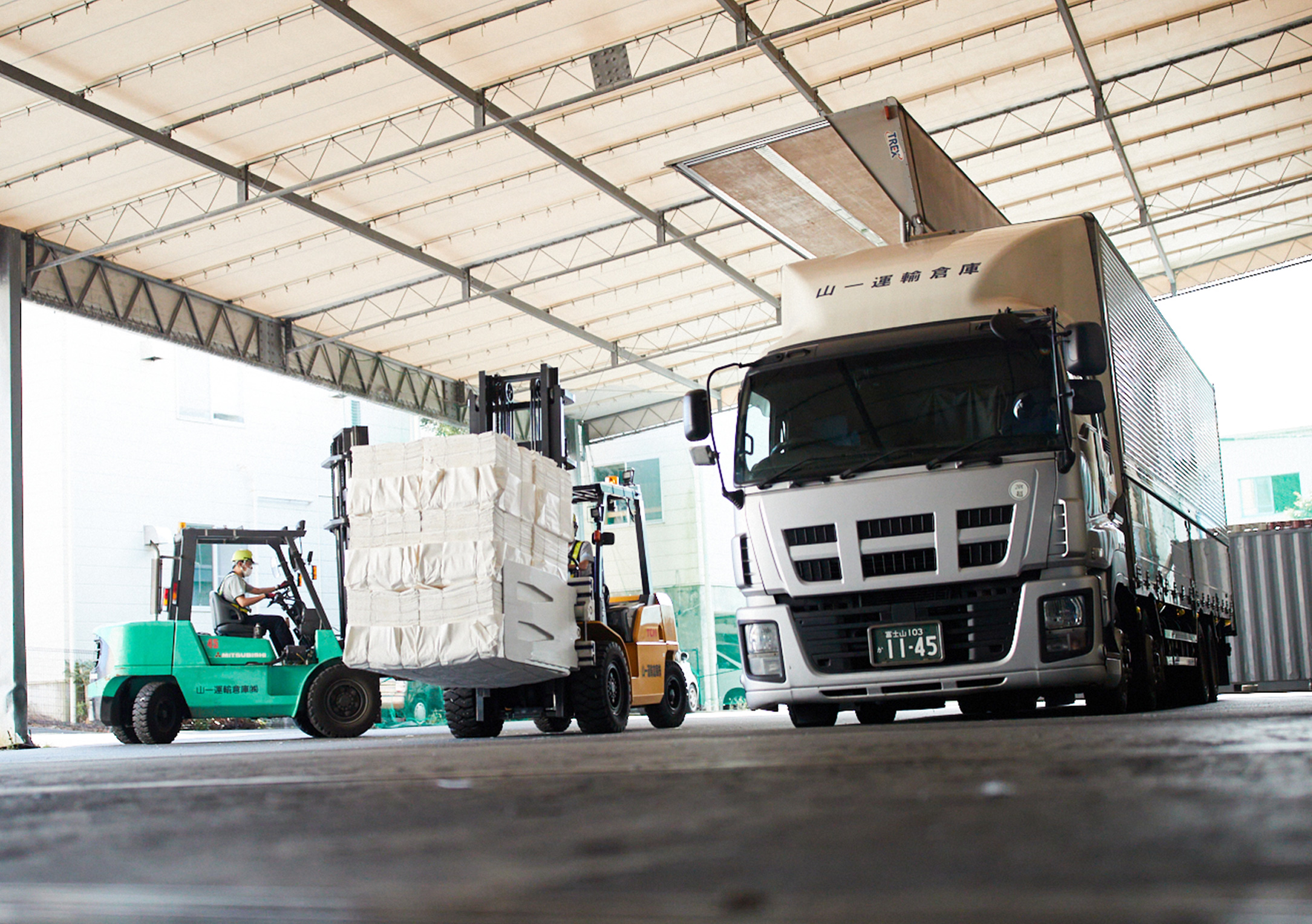 静岡県を中心に関東・関西方面をカバー。東北・九州方面も輸送可能です。また、輸送商品として紙製品、雑貨、一般・特殊車輌、自動車部品の輸送に長年の実績があります。