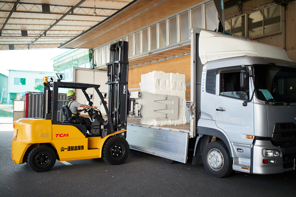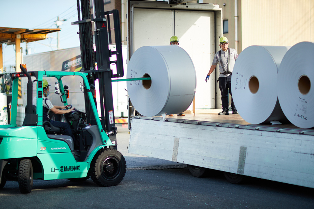 Yamaichi trans-logi Co., Ltd. is a transportation and warehouse service provider based in Fuji, Shizuoka Prefecture. Established in 1974, Yamaichi trans-logi Co., Ltd. has been developing with the local paper industry. We currently own about 120 automobiles, most of which are heavy trucks, and we specialize in transportation of paper-manufacturing-related products, home delivery packages, automobile parts and special passenger cars. We transport goods mainly to the Kanto and Kansai areas as well as areas in between. Our amount of work is stable because we take transportation orders directly from paper manufacturers and logistics providers, not through a broker.